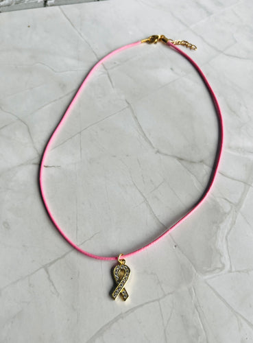 Collier octobre rose Cordon rose avec pendentif Ruban rose et or