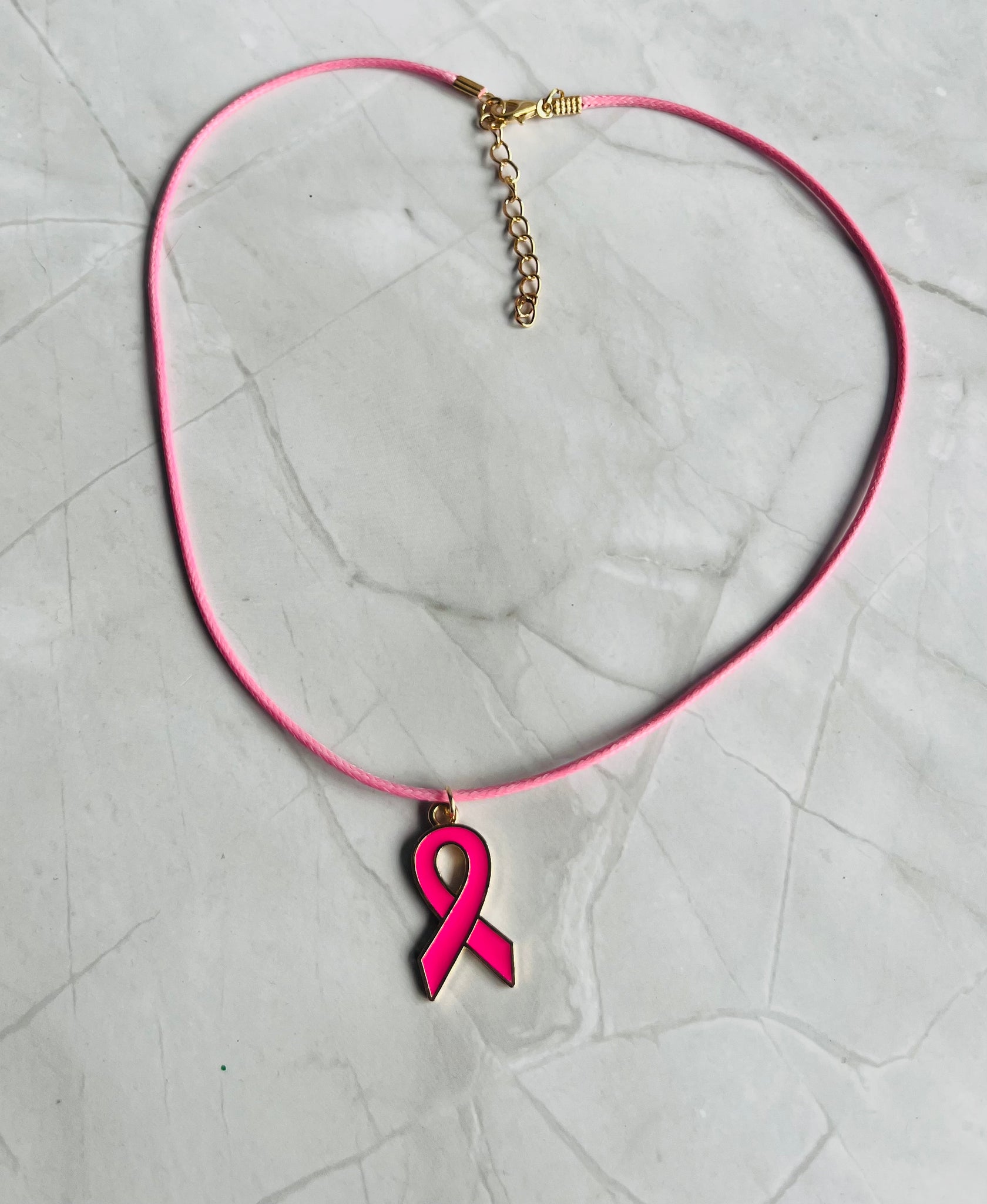 Collier octobre rose Cordon rose avec pendentif Ruban rose et or